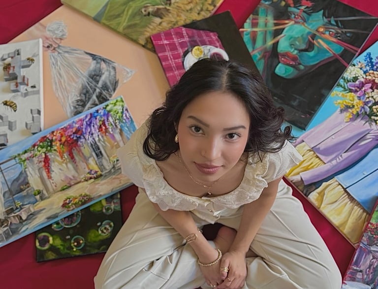 Hello! My name is Alexia Escoto. I am 22 years old, and I come from a Hispanic background. I am also born and raised in Las Vegas. I am a self-taught artist and throughout my whole life, I have been creating many different forms of art. I graduated college from the University of Nevada - Reno in 2025 with a degree in digital media. With this degree, I have pushed the limits of my personal art and the different forms that I can create art in. I have been doing so by exploring how I can integrate what I have learned through digital media with my traditional paint of canvas.